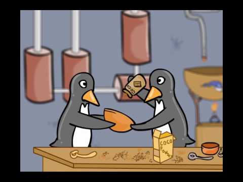 This is an advert for Penguin Chocolate bars using animation. The animator has used animation to create penguins and show them creating the chocolate bars themselves for the television advert. The animator has created the penguins and shown them moving via flash animation, which has allowed him to create the advert.